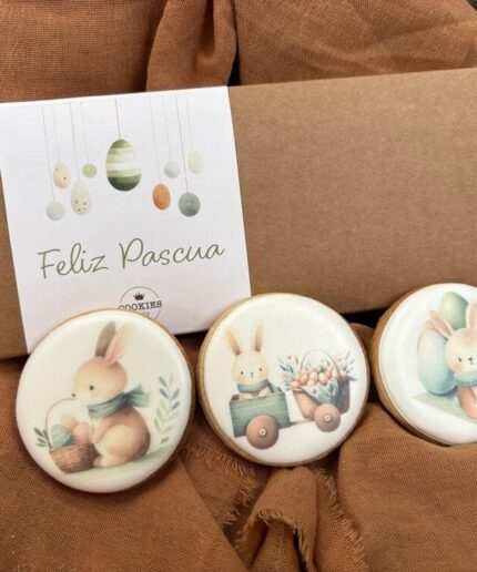 Se acerca SEMANA SANTA y es el momento perfecto para sorprender y regalonear a nuestros niños. Esta delicada caja de conejitos es el detalle perfecto para este día tan especial.Esta caja contiene 3 galletas de 5,5 cm con ilustraciones de Conejitos, todo viene dentro de una delicada presentación, nos preocupamos de cada detalle.Consejos de conservación: