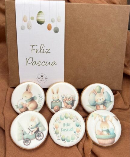 Delicados y elegantes diseños para sorprender a los que más quieres en SEMANA SANTA. La caja incluye 6 galletas (5,5 cm) con 6 ilustraciones de conejitos, todo dentro de una linda presentación.Consejos de conservación: